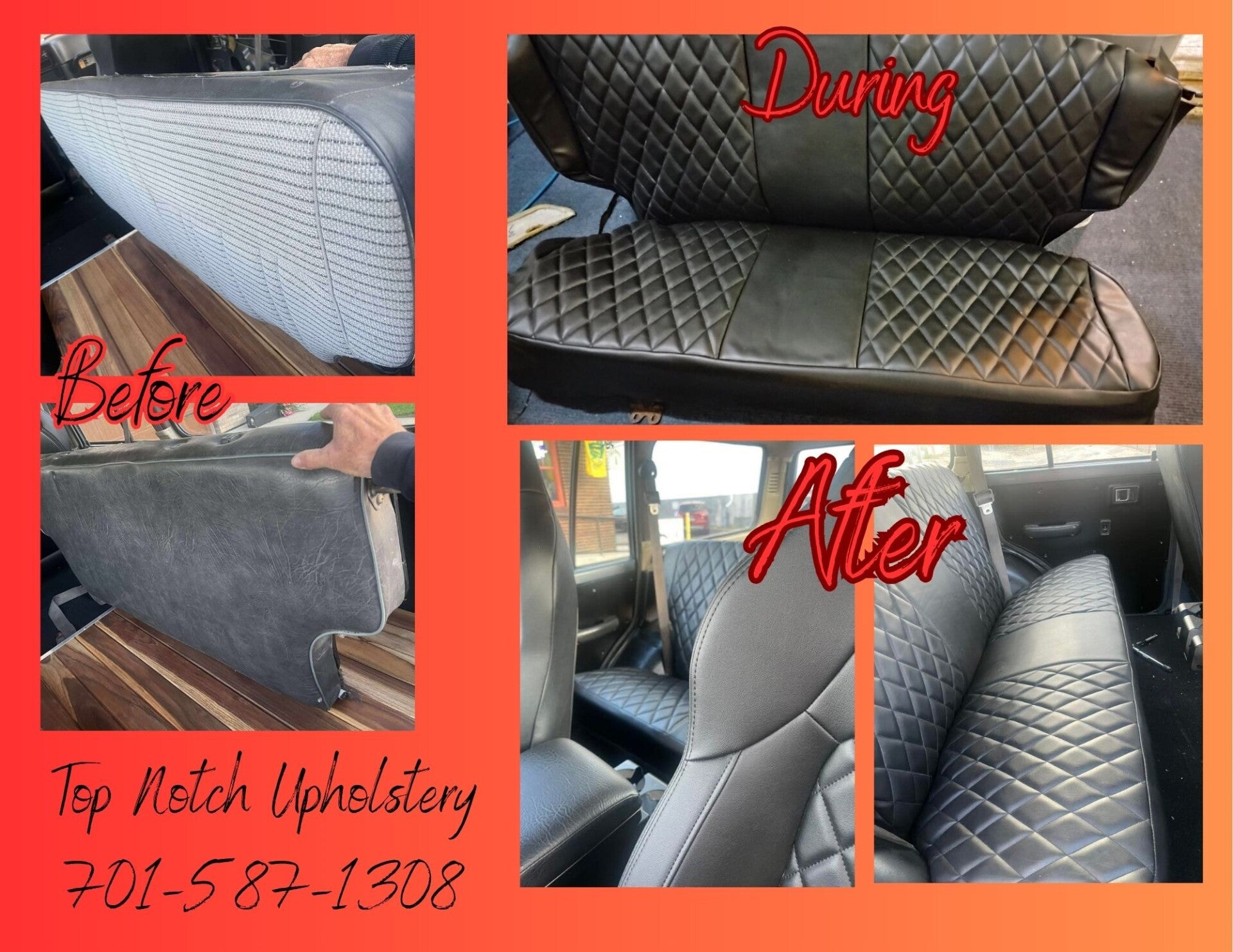 "I brought my car to Top Notch Upholstery to have the seats completely redone, and the results were outstanding. The craftsmanship is on a whole different level—clean stitching, perfect fit, and high-quality materials that look better than the original interior. They helped me choose the right fabric and color, kept me updated throughout the process, and finished right on schedule. My car honestly feels brand new again. If you need automotive upholstery done right, this is the place to go."
